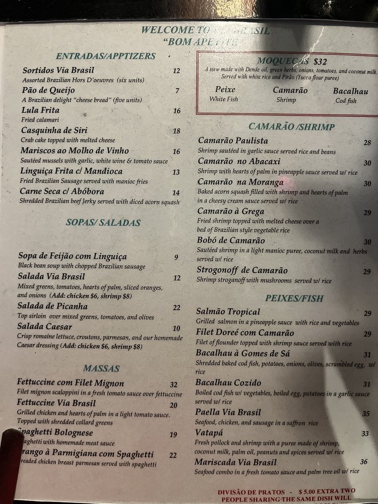 Experience the vibrant flavors of Brazil at Via Brasil NYC, a unique cocktail bar and seafood haven located in the heart of New York City. This veteran-owned establishment is not just a place to dine; it's a celebration of Brazilian culinary traditions. The menu is a feast for the senses, offering a variety of options from delectable Entradas like the famous pao de queijo to the rich and savory moquecas, featuring fresh seafood stews that highlight the freshness of the ingredients.